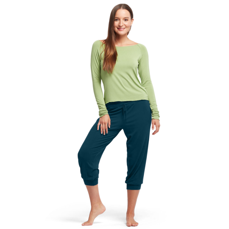 Ach ja… so eine weiche, bequeme und anschmiegsame Hose ist schon was Schönes. Egal, welche Bewegungen Sie gerade bei Yoga, Pilates, Tanz oder draußen in Wald und Feld machen, nichts kneift, alles sitzt schön locker, auch dank des geraden Schnitts.