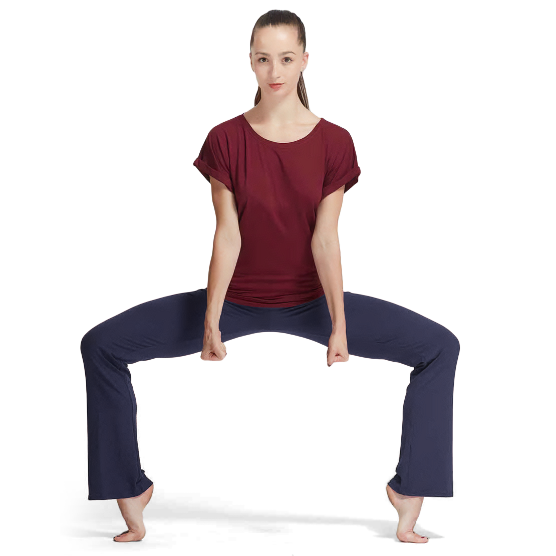 Die Jazzhose TempsDanse Luna – hier in einem dunklen Blau – ist ein Klassiker aller modernen Tanzstile. Von der Hüfte bis zu den Knien eng geschnitten und dann leicht ausgestellt zum Knöchel hin weit auslaufend, das ist der traditionelle Schnitt einer Jazzhose, wie wir sie spätestens seit den 80er-Jahren alle kennen.